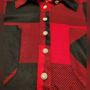 RED & Black Flannel Top. with Buttons at the 3/4. and roll up button sleeves. soft and functional....