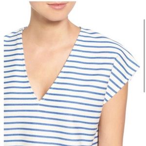 Madewell blue and white striped shift dress. Sleeveless / cap sleeves. Cotton blend. In excellent condition. Size small