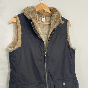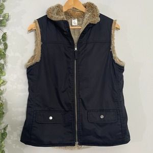 GAP | REVERSIBLE VEST SIZE M BLACK FUR TAN