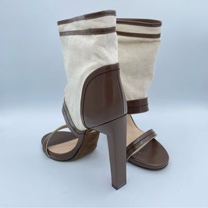 Bally Leather & Canvas Heels 10 1/2 Brown/Natural