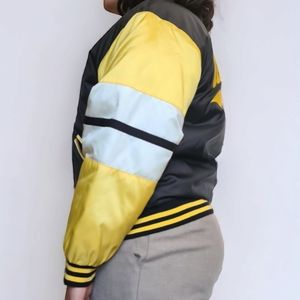 Rare find, puffy yellow and black bomber jacket with snap fasteners, warm for autumn and can layer underneath.