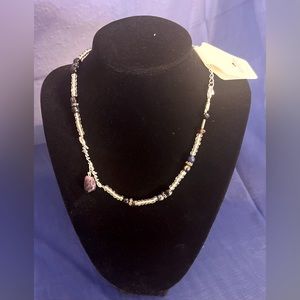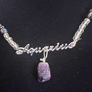 NWT Iridescent and Clear Beaded Choker with zodiac Aquarius and Amethyst stone.