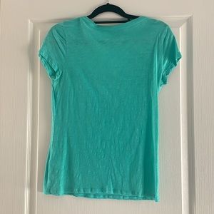 Excellent used condition, wore once, adorable Tiffany turquoise blue V-neck T-shirt with penguin bedazzled in pink sequins. Perfect for vacation, would look fantastic with a pair of white denim jeans or a skirt!