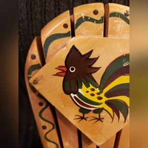 Vintage Handpainted Wall Hanging Rooster Wooden Knife Block