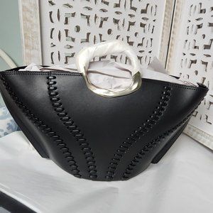 AJE Whipstitch Remi Black Large Leather Tote Gold Sculptural Handles PRICE DROP