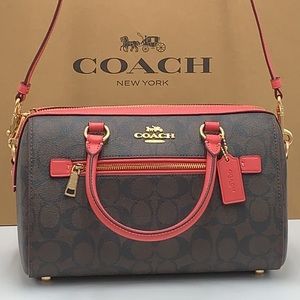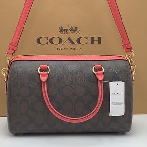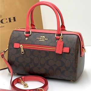 COACH NWT Coach Rowan Satchel In Signature Canvas Brown Watermelon Color