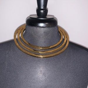 Beautiful heavyweight gold plates collar necklace with 3 layer orbital cutout design. Slips on neck. Visible scratching that does not take away from beauty. Truly regal piece for your collection!