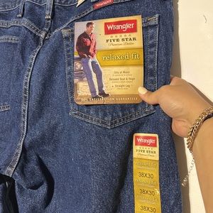 NEW Wrangler Men's Five Star Relaxed Fit Dark Rinse Denim Jeans Size 38