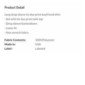 Fun tie dye long sleeve silky top with matching tank set. NWOT