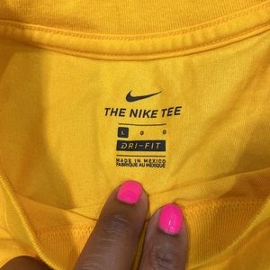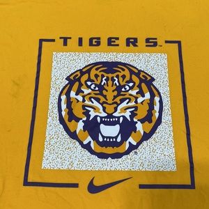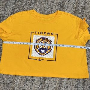 The Nike tee LSU women’s crewneck, short sleeve crop top T-shirt, size large overall good condition does have a few stains with your featured in photo. Not sure if it’ll come out in the wash great for game day.