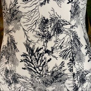 Super cute fitted black and Grey/silver coral print dress. Well made with fitted pleating and back hidden zipper. Great for luncheon or tropical vacation.
