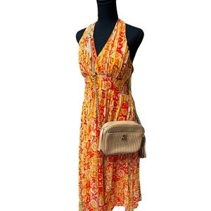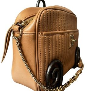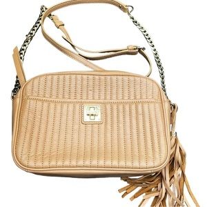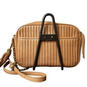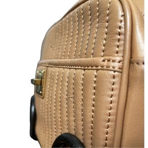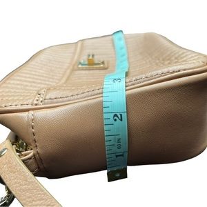 ISAAC Mizrahi Quilted Tan Leather Camera Style Crossbody Bag