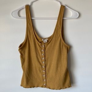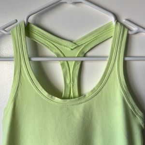 Neon green/yellow Lululemon Tank Top (size 4). Full length tank top. Soft and Stretchy. Very small and light stain on the front, hard to see. Shoulder to bottom of shirts measures approximately 25.5in.