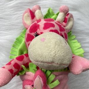 Fiesta Baby Giraffe Stuffed Animal 8" Pink Green Baby Blanket Lovey Kids Cuddle