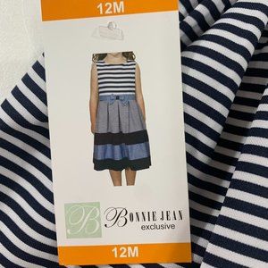 Bonnie Jean Girls Dress 12M Sleeveless Striped Dress Navy Blue White 12M