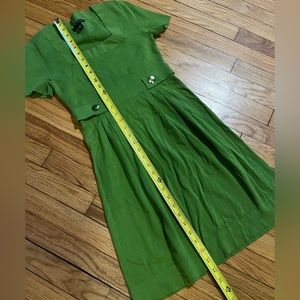 Banana Republic grass green knit dress sized petite small. Measurements and condition are pictured. First two images most accurately capture the color. Purchased in the early 2000’s and has been in storage