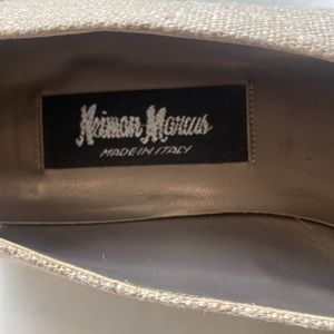 NEMAN MARCUS Made in Italy Classic Style Natural Oatmeal Gold Studded Low Heel