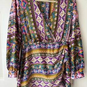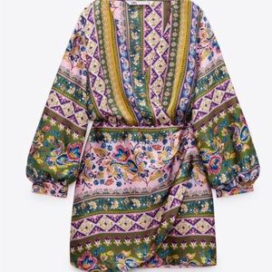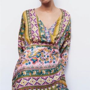 Zara Satin Effect print mini dress Multi color pink/purple/green/gold. Gorgeous!