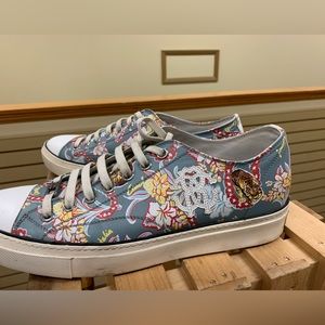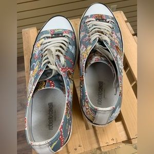 Roberto Cavalli Floral Low Leather Sneakers Sz 45