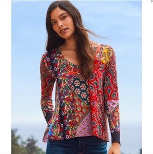 Johnny Was Small Moa Favorite Long Sleeve V Neck Swing Tee