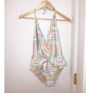 NWOT Kenny Flowers ~ The North Shore Deep V Halter One Piece SZ: Large