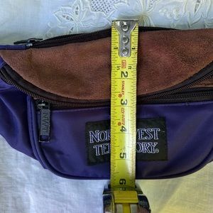 Vintage Purple Northwest Territory Fanny Pack with Suede Lining and 3 Pockets (2 in front, 1 in back). Long adjustable strap. Some signs of wear, but in good condition. Functional and ready for your next adventure!