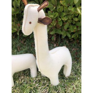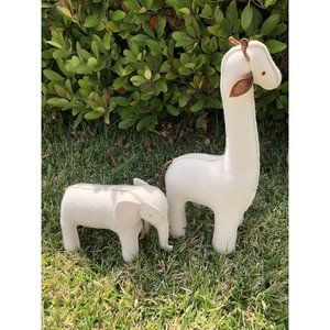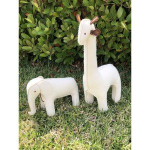 RH Restoration Hardware Nursery Felt Animal Bookends Elephant & Giraffe IVORY-color