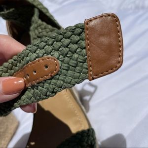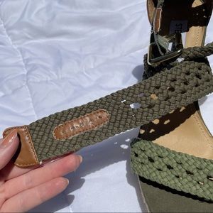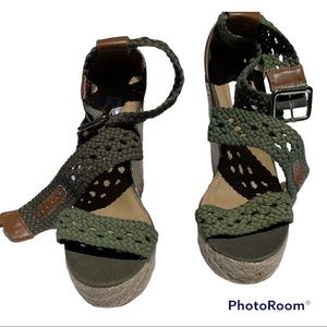 Steve Madden Beige And Green Bohemian Crochet Open Toe Espadrille Heel Wedges