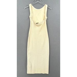 ENZA COSTA Dress Womens Small Cream Rib Scoop Back Midi Dress Stretch Low Back