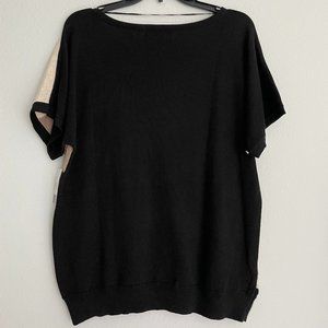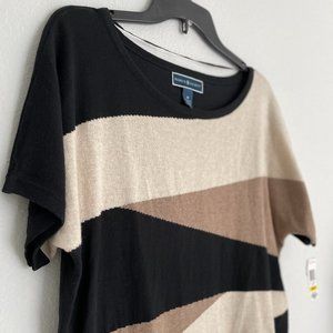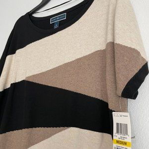 NWT & never worn: Karen Scott Blouse (Originally from Macy's) - Black/Brown/Tan Striped. Very soft sweater feel (not scratchy), but light weight and short sleeved. Perfect for fall! Tag still attached - original price has been cleanly cut from bottom.