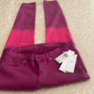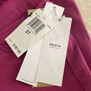 New with tags, Hudson jeans Krista, super skinny size 27 and a super soft fabric and lots of stretch kind of a tie dyed pink. Measures 14 inches across the waistband has an 8 inch rise just about a 30 inch inseam and measures 5 inches across the leg opening.