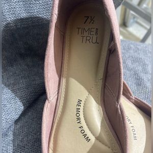 Cute light pink flats memory foam bottoms size 7 1/2 have been worn a couple times but are in pretty good condition brand Time and TRU.