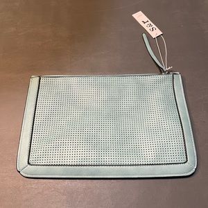 Cute handbag/makeup bag is from summer & rose the colors are a turquoise and blueish it is brand new with tags and is a leather type of feeling. Great accessory piece for a country concert, the rodeo, or a pop of color to add to your favorite Boho outfit.