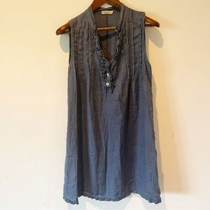 ALESSIA PACINI Made in Italy Medium Dress Ruffled pleated V-Neck Linen Dress