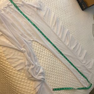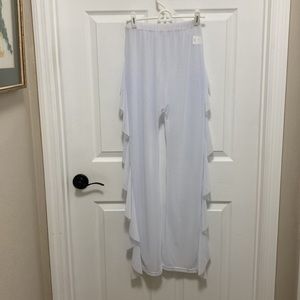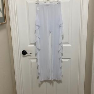 Sheer white long pants with side ruffles. Size Med, 65% polyester 35 % cotton