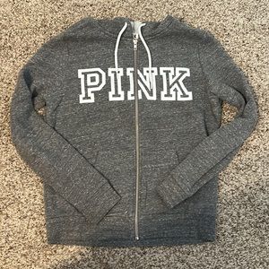 This is a bundle of two VS PINK zip up hoodies with white lettering both in a size small. They are both in great condition and super comfortable! Also coming from a smoke free home!!
