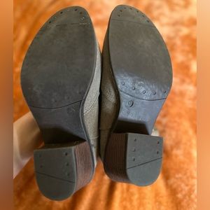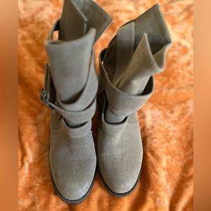 Cathy Jean grey booties with gold buckle, size 6.