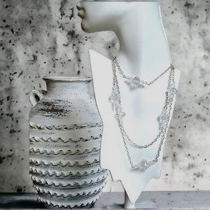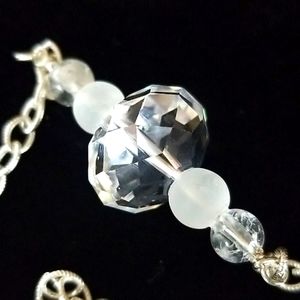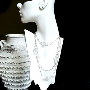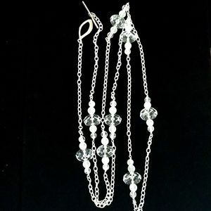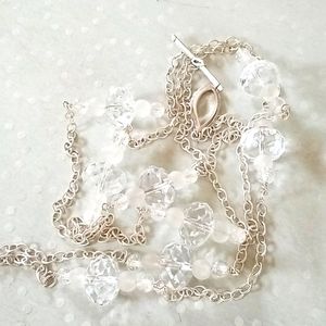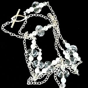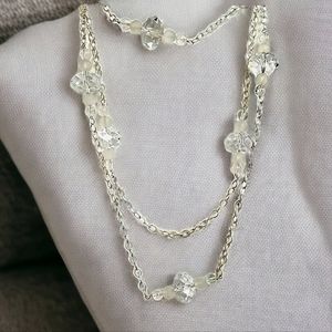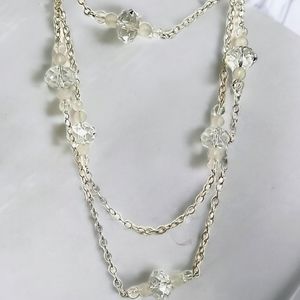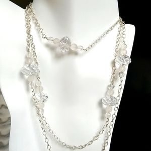 Luxurious vintage extra long .925 sterling silver chain accented with sections of frosted, crackle and clear faceted crystal beads.