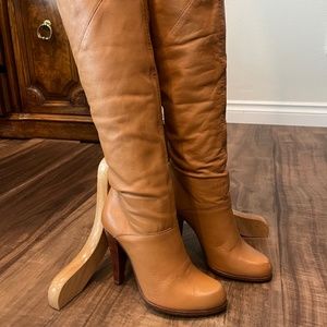 Brazilian Knee-High Leather Boots - Vintage size 7. Beautiful caramel/cognac/light brown color. Hand made in Brazil. Only worn once. Comes with an additional pair of boot trees.