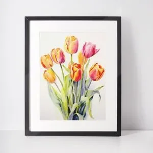 Watercolor Tulips Wall Art Illustration Print Poster Unframed