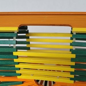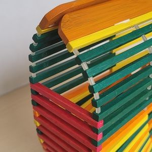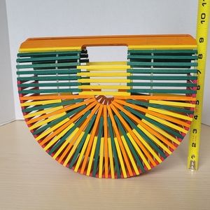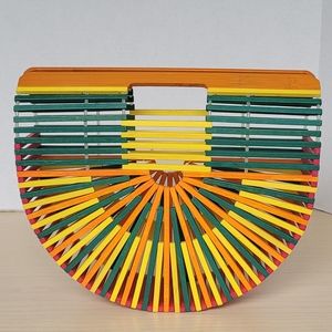 One Mango Fashion Colorful Bamboo Handbag Handmade Weave Beach Bag Tote