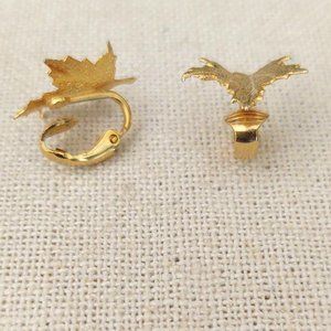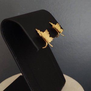 Clip on gold textured leaf earrings