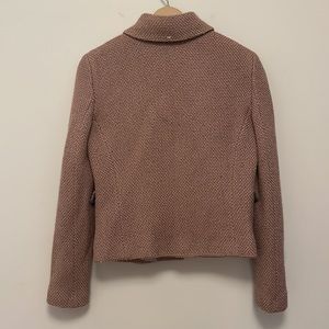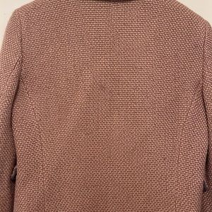 Dusty rose wool/acrylic blazer. In very good condition. Some pilling that can be removed. Minor slight mark in the center of the blazer in the back as in photo. Could likely be removed with dry cleaning. European size 46. Fits like a US size 6.
