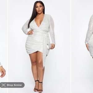Fashion Nova Center Stage Sequin Mini Dress - White/Silver - Large - Never Worn