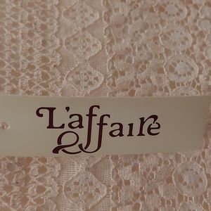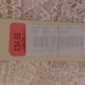 strapless cream lace overlay dress. asymmetrical lace knee length bottom. lined partially on the in side. elastic top. could probably be used as a maxi skirt too. brand new never worn. super cute for summer