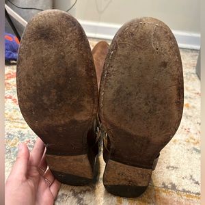Frye back zip harness boot. Definitely have been used and loved. They could use a good conditioning but good condition.