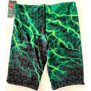 New with Tags, TYR Men's Durafast Elite Illume Jammer Swimsuit, Black with Green, Size 32, $54.