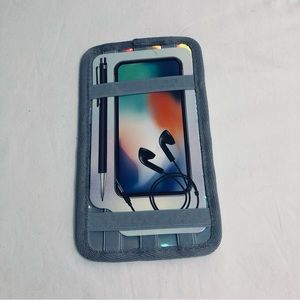 Accessories cellphones headphones pen Organizer: cards pockets, back elastic straps. Color Gray