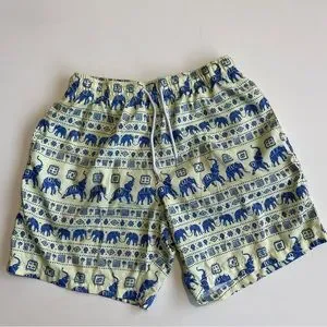 Boardies Swim Shorts Trunks Mesh Liner Size Medium Yellow Blue Elephants