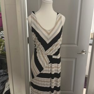Black, gold, silver and white stripe pattern; 86% rayon, 10% metallic, 4% spandex